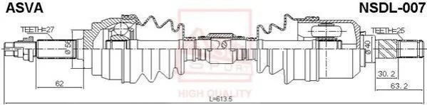 ПРИВОД ЛЕВЫЙ 25X613.5X27 (PRIMERA) ASVA NSDL-007