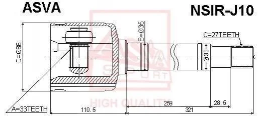 ШРУС ВНУТРЕННИЙ ПРАВЫЙ 33X33X27 (NISSAN QASHQAI J10E 2006-2013) ASVA NSIR-J10