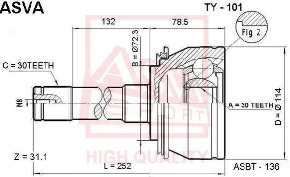 ШРУС НАРУЖНЫЙ 30x72.5x30 (TOYOTA LAND CRUISER 100 HDJ101/UZJ100 1998-2007) ASVA TY-101