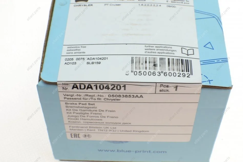 Гальмівні колодки передн.PT Cruiser 00- BLUE PRINT ADA104201