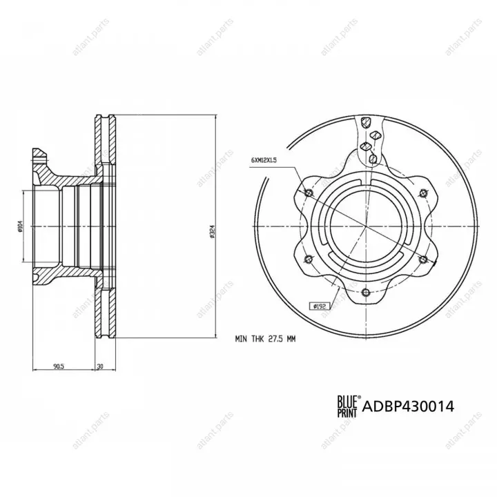 Диск гальмівний (задній) MB Vario 614 (324х30) (+ABS) BLUE PRINT ADBP430014