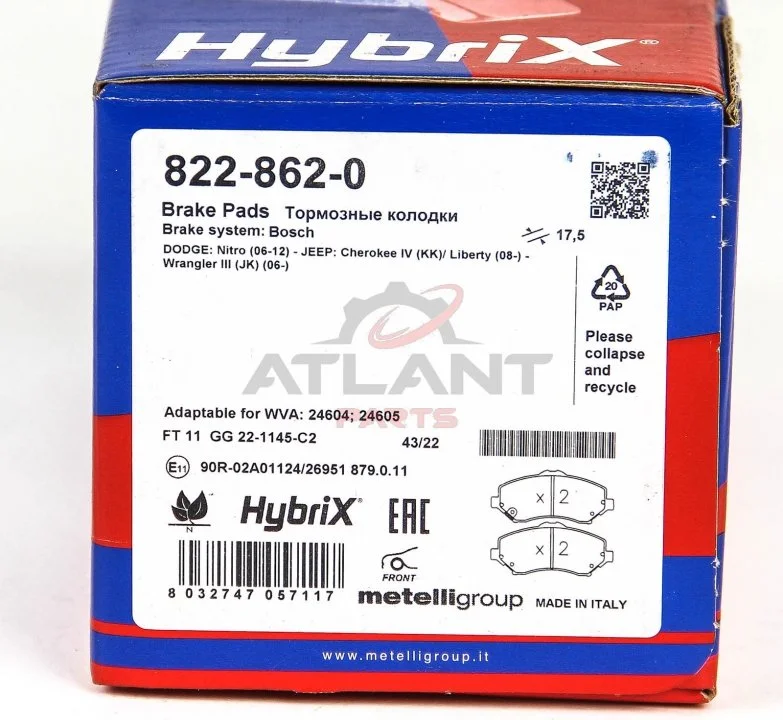 Количество тормозных колодок: 4