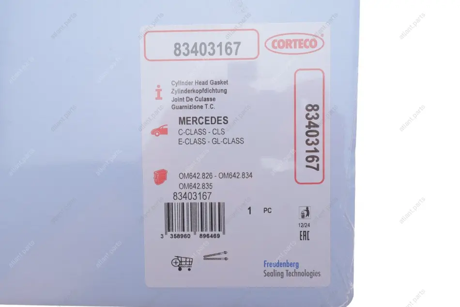 Прокладка ГБЦ Лів (товщина: 1,2мм) MERCEDES C T-MODEL (S204), C (W204), CLS (C218), CLS SHOOTING BRAKE (X218), E (A207), E (A238), E ALL-TERRAIN (S213), E (C207), E (C238) 3.0D 05.06- CORTECO 83403167