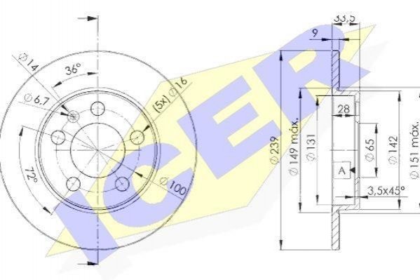 Диск гальмівний (задній) Audi A3/TT 96-06/Skoda Octavia/VW Golf 98-06 (239x9) (з покр) (повний) ICER 78BD53112