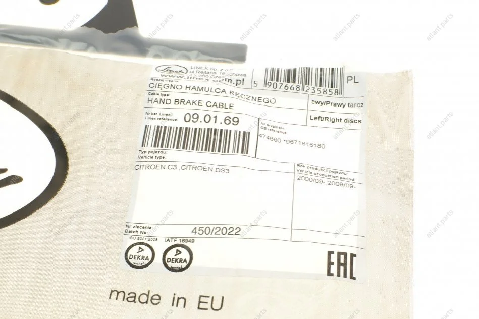 Трос ручного тормоза LINEX 09.01.69