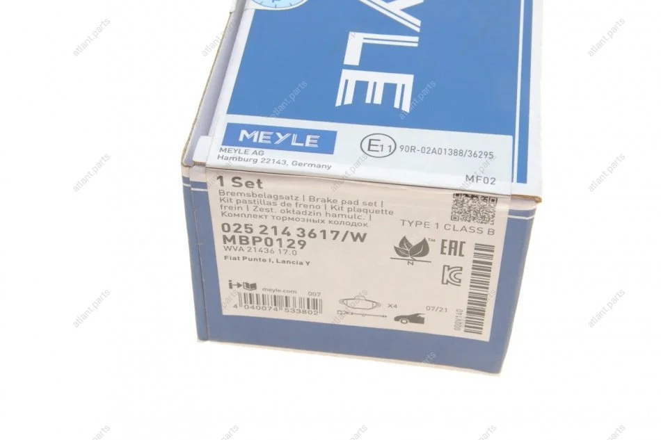Тормозные колодки, дисковый тормоз (набор) MEYLE 0252143617W