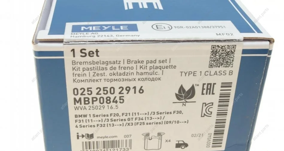 Комплект тормозных колодок MEYLE 025 250 2916