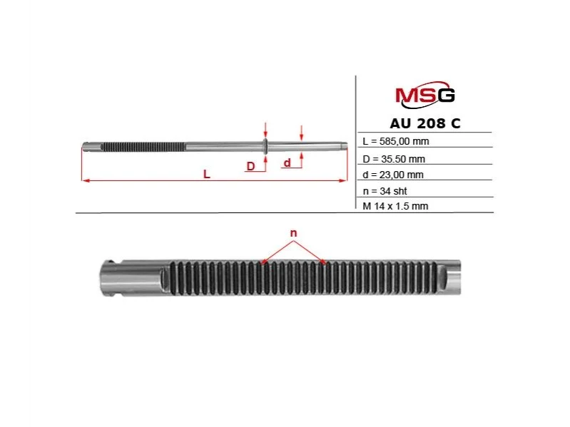 Шток рульової рейки з ГПК новий SKODA FABIA II (5J5,5J2) 06-14; SEAT IBIZA III (6L) 02-09; AUDI A2 (8Z0) 00-05 MSG AU208C
