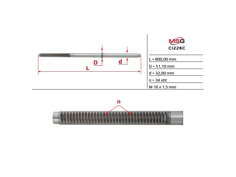 Шток рульової рейки з ГПК новий CITROEN JUMPER (290) 15-19; PEUGEOT BOXER (250) 06-; FIAT DUCATO (250, 290) 06- MSG CI226C