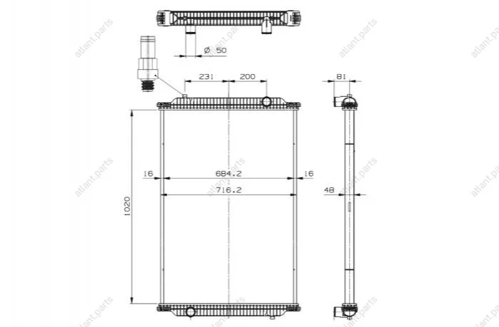 Размеры радиатора: 1020-708-52