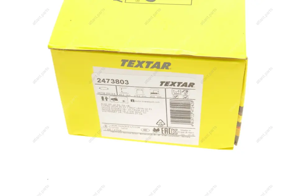 Textar – производитель высококачественных деталей автомобильного тормоза, базирующийся в Германии и входящий в концерн Nisshinbo Holdings Inc. Продукцию компании можно встретить и на первичном рынке (к примеру, идет как оригинал к некоторым автомобилям марки Toyota), так и вторичном. Все производственные линии сертифицированы в полном соответствии с QS 9000 и DIN EN ISO 9001.