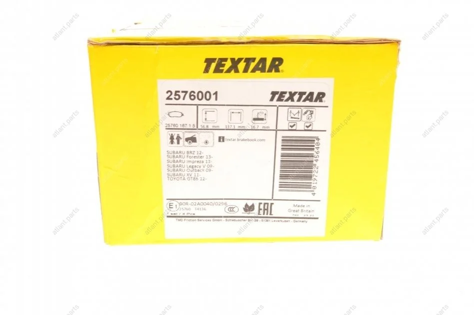 Textar – производитель высококачественных деталей автомобильного тормоза, базирующийся в Германии и входящий в концерн Nisshinbo Holdings Inc. Продукцию компании можно встретить и на первичном рынке (к примеру, идет как оригинал к некоторым автомобилям марки Toyota), так и вторичном. Все производственные линии сертифицированы в полном соответствии с QS 9000 и DIN EN ISO 9001.