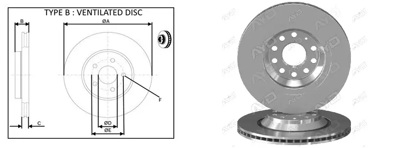 Тип гальмівного диска: із зовнішньою вентиляцією