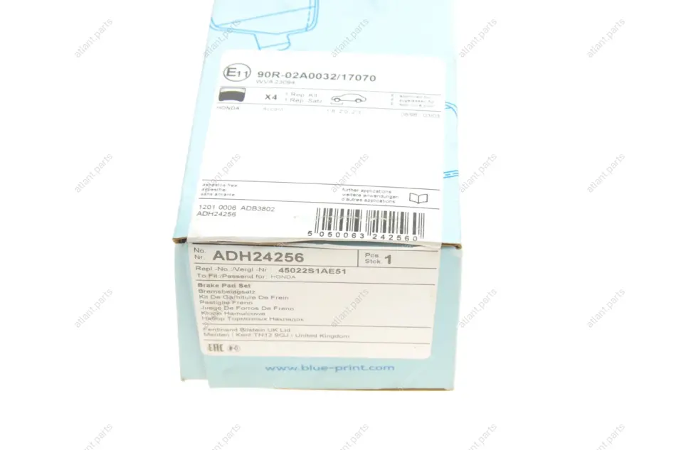 Колодки гальмівні передн. Accord 98- BLUE PRINT ADH24256