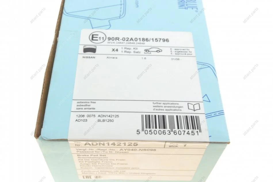 Гальмівні колодки передн.Almera 00- BLUE PRINT ADN142125