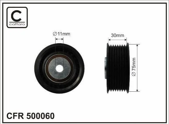 Ролик проміжний поліклинового ремня Scania 4/4 Bus/Citywide/F Bus/Interlink/Irizar/PB/K/K Bus/N Bus/Omnilink/P/G/R/T/Touring DC07.101-OC09.101 01.96- 75x11x30 CAFFARO 500060