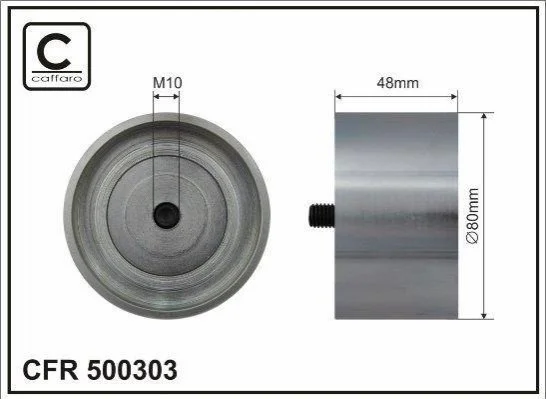 Ролик проміжний поліклинового ремня Mercedes Actros MP2/MP3/Atego/2/Axor/2/Capacity O 530 GL/Citaro O 530/Conecto O 345/Econic OM447.947-OM926.939 09.96- 80x10x48 CAFFARO 500303