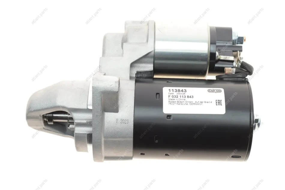Стартер (12В, 1,1кВт, новий із заставою) FIAT LINEA, PANDA/HATCHBACK, LANCIA MUSA, OPEL AGILA A, ASTRA H, ASTRA H GTC, COMBO TOUR, COMBO/MINIVAN, CORSA C, CORSA C/HATCHBACK, CORSA D 1.3D 06.03- CARGO F 032 113 843