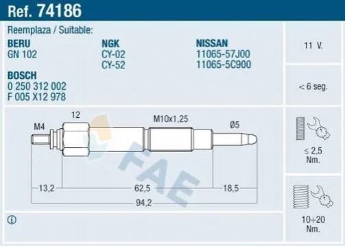 Свічка розжарювання FAE 74186