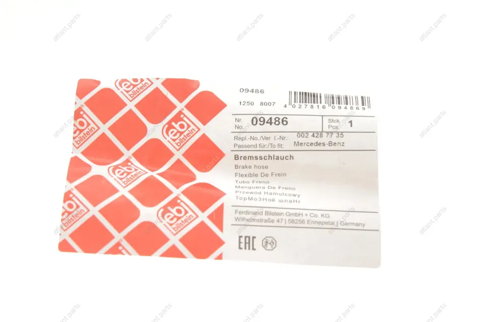Шланг гальмівний передн. 207D-310/410 77-507-814 FEBI 09486