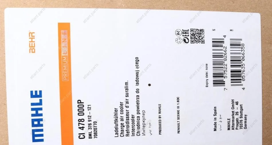 Радіатор інтеркулера MAHLE MAHLE / KNECHT CI 478 000P