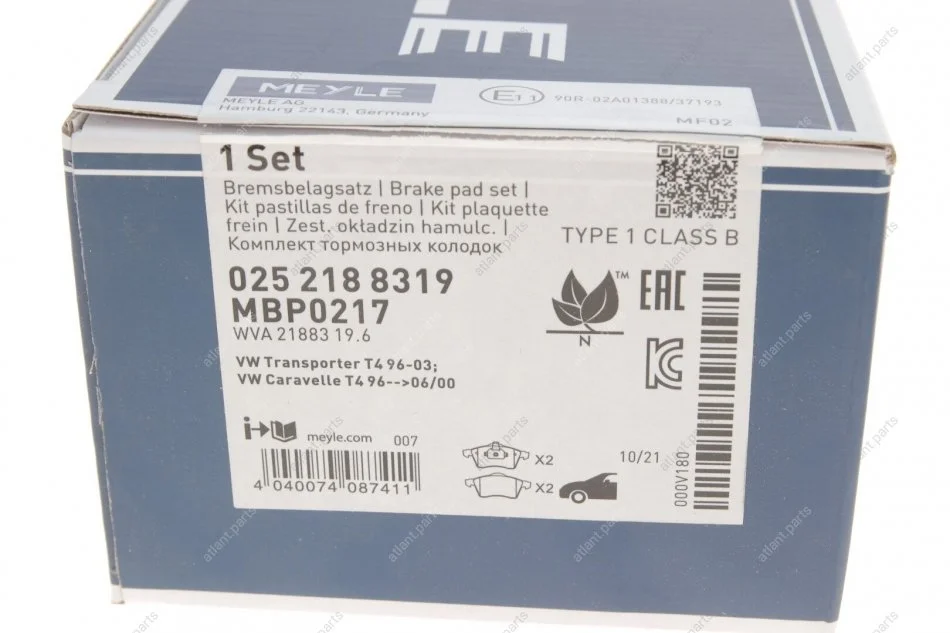 Комплект гальмівних колодок MEYLE 025 218 8319
