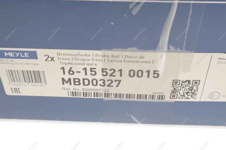 Гальмівний диск MEYLE 16155210015