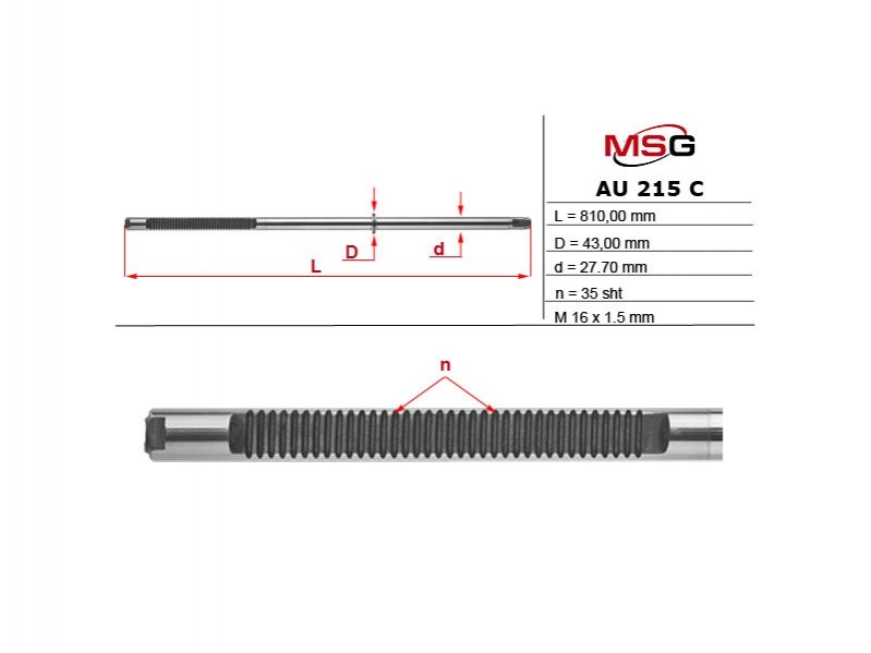 Шток рульової рейки з ГПК AUDI A6 (4B2, C5) 97-05,A6 (4B5, C5) 97-05 MSG AU215C