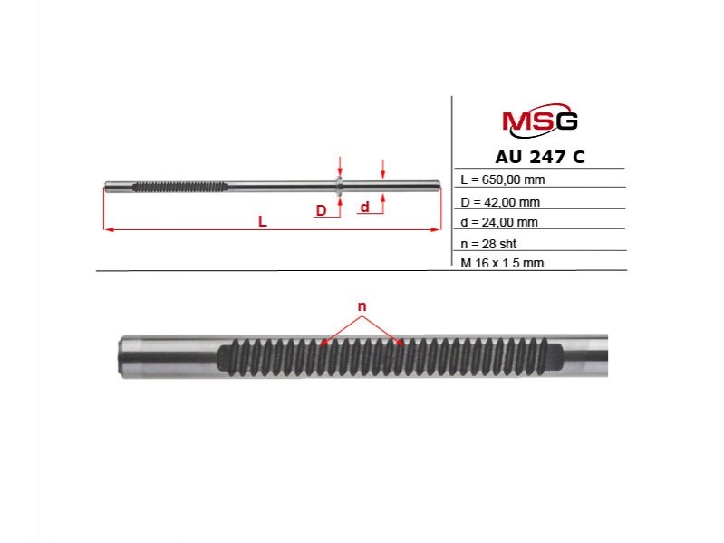Шток рульової рейки з ГПК новий AUDI A4 ALLROAD (8KH, B8) 09-16,A5 SPORTBACK (8TA) 09-17,A5 (8T3) 07-17,A5 (8F7) 09-17 MSG AU247C