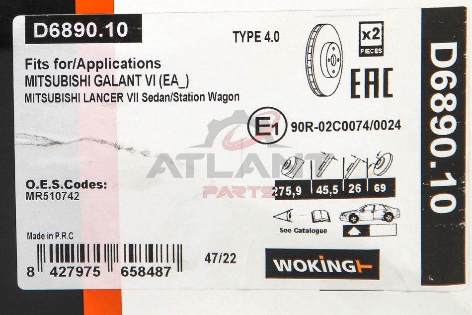 Гальмівний диск перед. Galant/Lancer (99-11) WOKING D6890.10